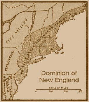 Map of The Dominion of New England, ruled over by Sir Edmund Andros, from 1686-1689, during the rule of James II.